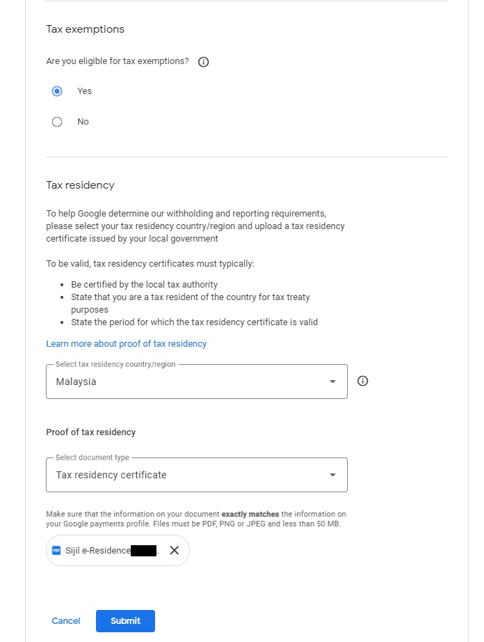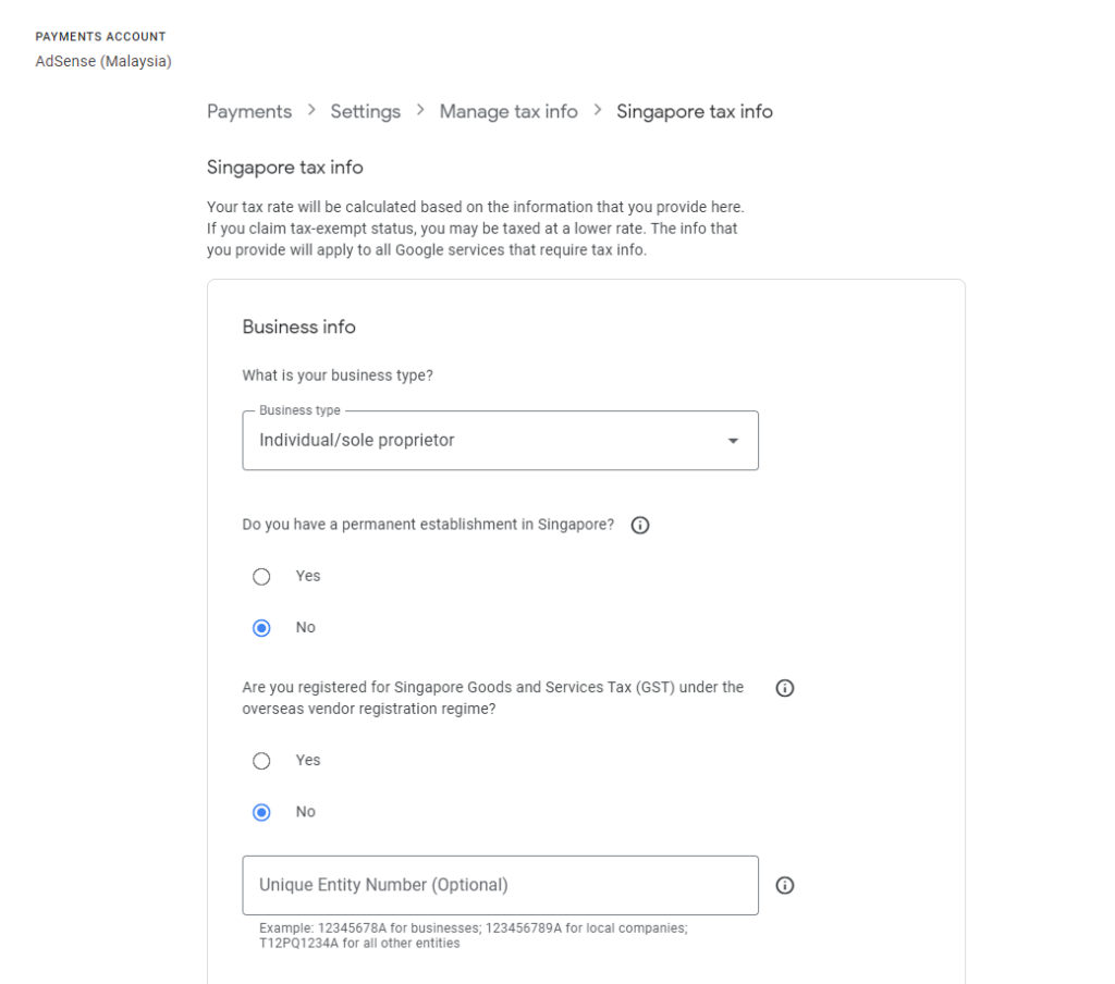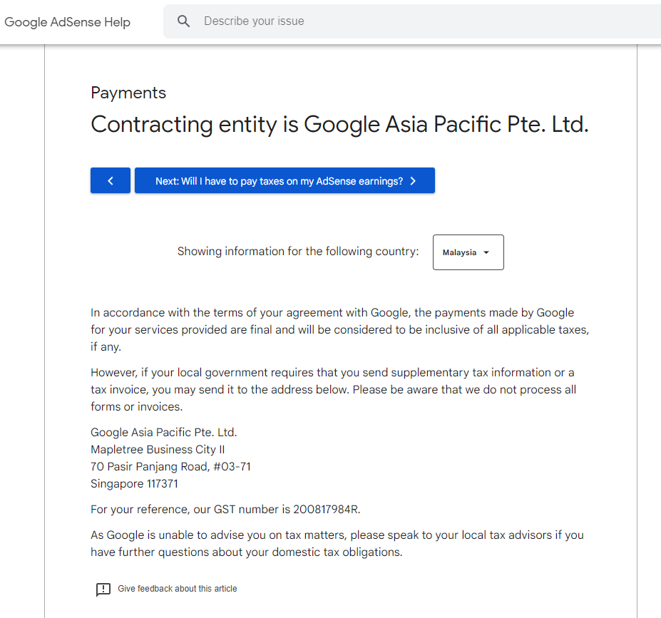 I was super confused because I’m Malaysian and a tax resident in my country not Singapore. It was very hard to find clear information for Malaysians on this even after searching Google AdSense forums and Reddit. Even when I found some guides, it was for YouTubers and not bloggers.