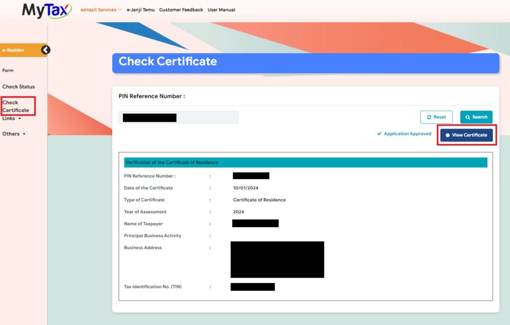 Once it is approved, you will get an email notification and then you can go back to the MyTax e-Residence portal, go to “Check Certificate” then click “View Certificate” to download your COR.