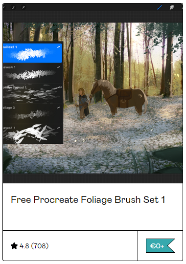 Why I like this? Nice starter set for foliage rendering especially if you’re doing background scenes. This is the set I downloaded to try and I really liked it. If you go to TSU’s gumroad page, they also have a few other brush sets for free or €1.