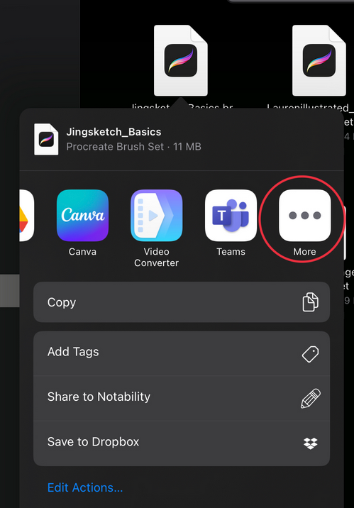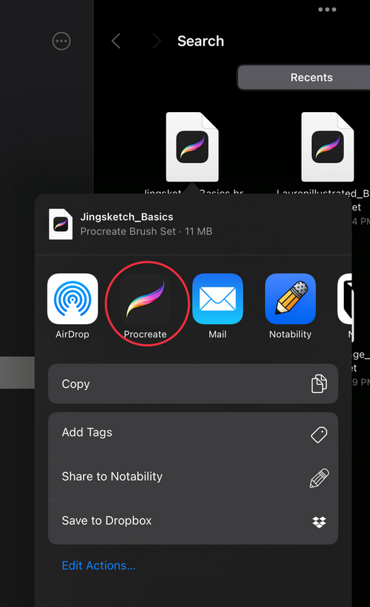 Look for Procreate, click and it will auto import the brushset into Procreate.